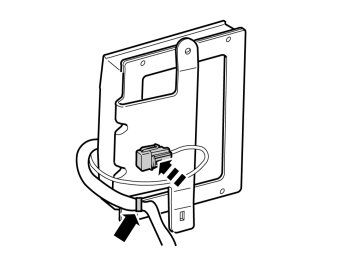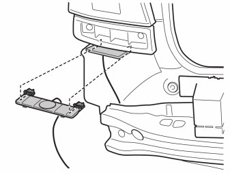 - Plug in the connector to the cable harness from the RSE system and press on the connector clips on the panel edge.