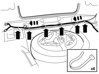 - Secure the antenna wiring to the cable harness using six cable ties, use the cable ties from the cable ties with lugs.