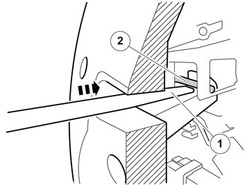 - Insert the tip of the screwdriver (1) under the lock spring (2).