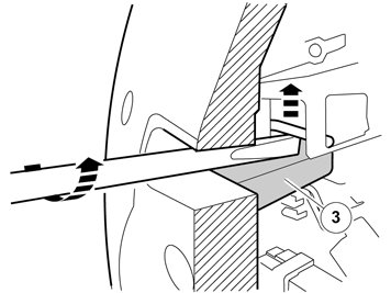 - Turn the screwdriver so that the end presses the lock spring up until it can move past the locking catch (3)