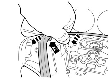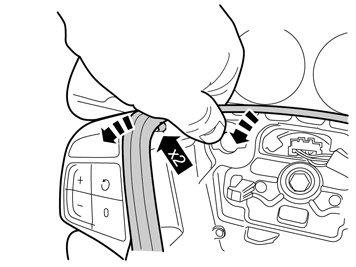 - Remove the cover on the reverse of the right-hand spoke on the new steering wheel.