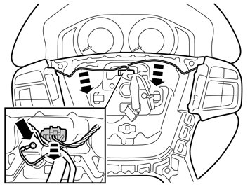 - Carefully fold back the steering wheel module so that the connectors in the upper edge are accessible.