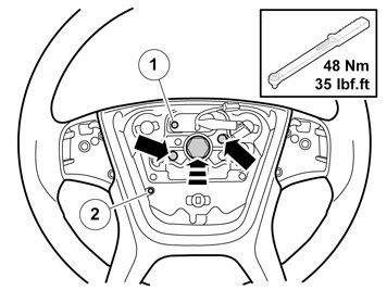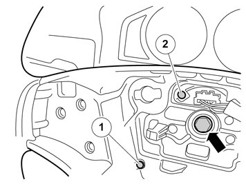 - Reinstall the keypad on the reverse of the steering wheel. Tighten using the screw (1).