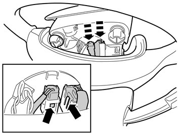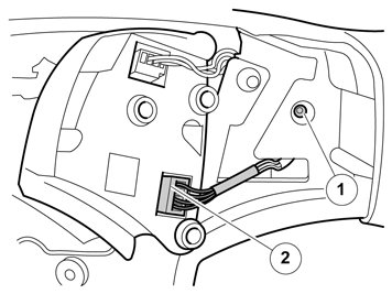 - Plug in the connector (2) for the steering wheel's right-hand keypad.