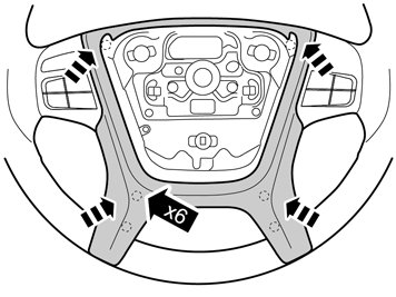 - Remove the left and right-hand keypad/keypad dummy from the steering wheel by gently prizing them off with a plastic weatherstrip tool.
