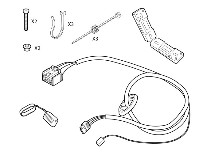 - Attach both cables to the rear struts on the electric Park Brake Module bracket and by the cable conduit. Use cable ties with and without clips.