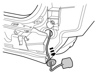 - Insert antenna cables through opened hole in rubber bushing so much that they are not stretched when the rubber bushing is to be installed.