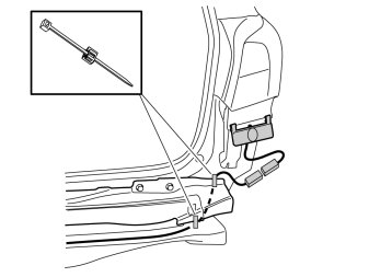 - Place antenna cable between body and bumper rail, out through the hole and along the bumper rail's outside and in through the hole on the right side.