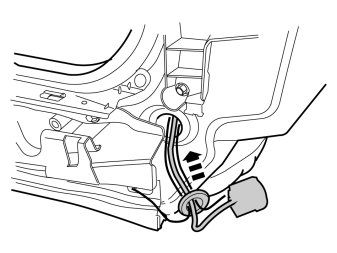 - Route the cable harness under the reinforcement plate and forward in the car.