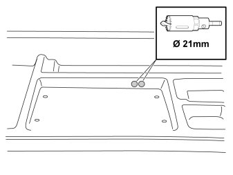 - Drill in the markings using a 21 mm hole-cutting saw.