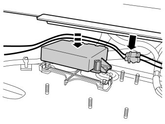 - Plug in the connector to the cable harness from the RSE-system and press on the connector's clips on the sheet metal edge.