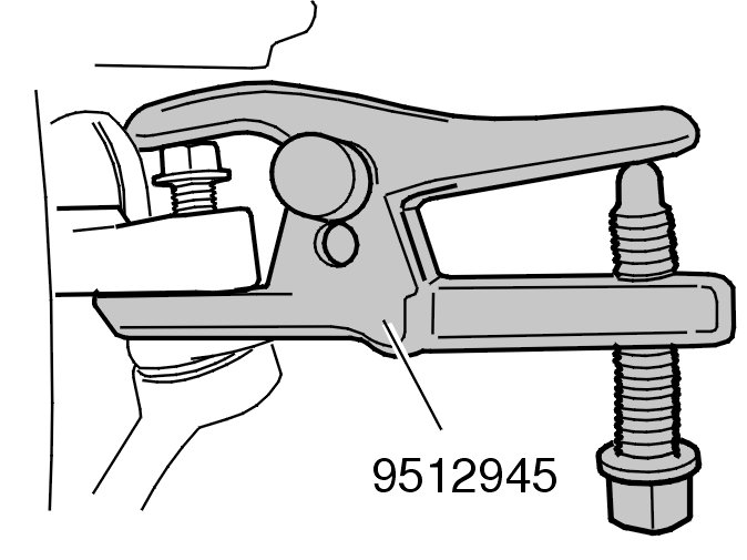 Press the steering joint out of the wheel spindle. Use: 951 2945 Puller 951 2945 Puller.