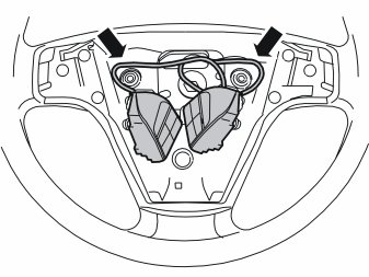 - Remove the cover on the reverse of the right-hand spoke on the new steering wheel.