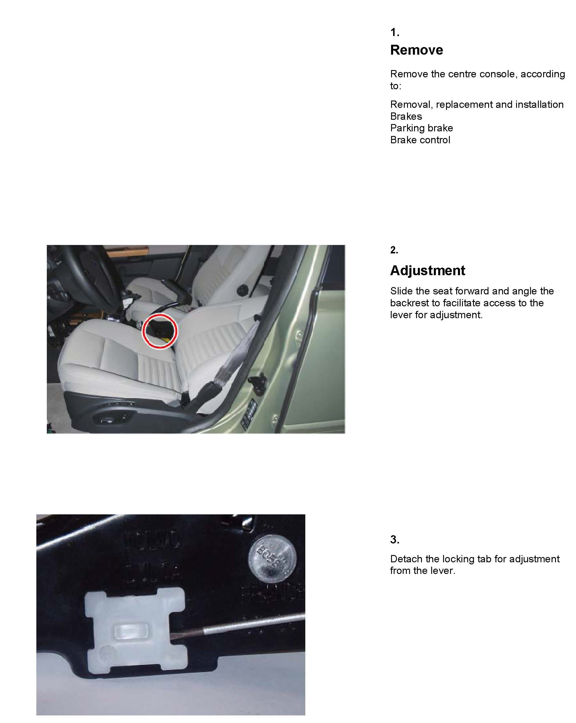 Adjust the handbrake lever following the instructions in attachment TJ19627_Instruction_13W13.pdf