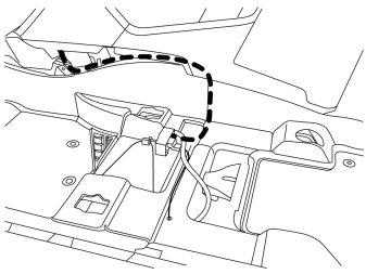 - Lay the cable in the carpet joint. Route the cable forward and up in the centre console.