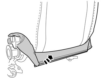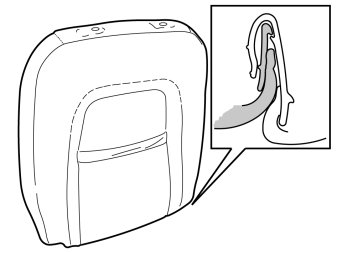 - Insert a curtain wire or similar from above and down on the back of the seat back, between the upholstery and padding.