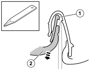 - Get a weatherstrip tool and pry apart the strips so that the catch (1) releases.