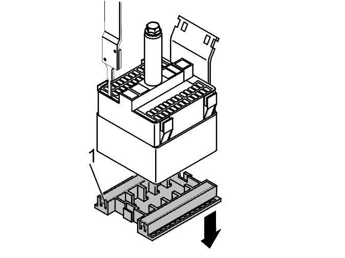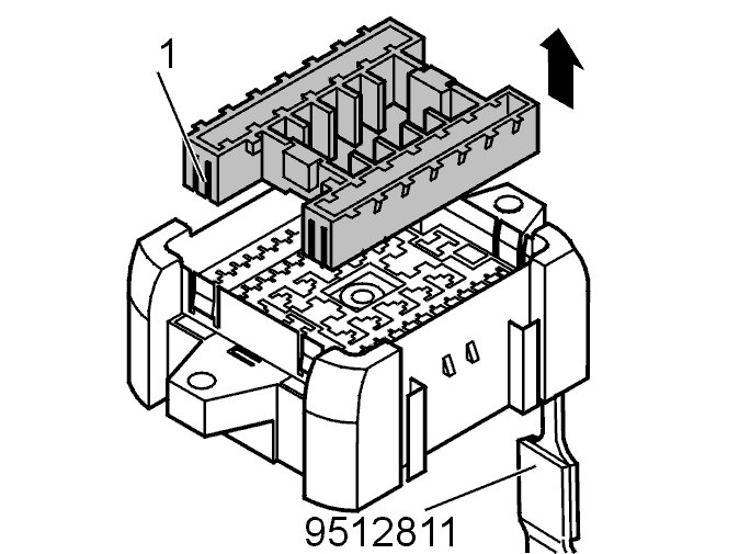 Press the secondary lock out from the cable side, for example using tool: 951 2811 Terminal removal tool 951 2811 Terminal Removal Tool or an electrician's screwdriver, as illustrated.