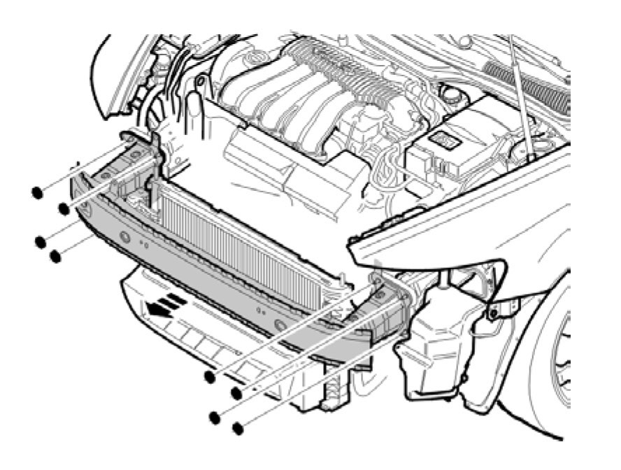 Remove the remaining 6 M8 screws for the bumper rail. Remove the bumper rail.