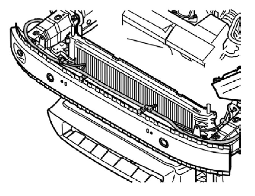 NOTE: Note how the washer hose and cable are routed on the rail.