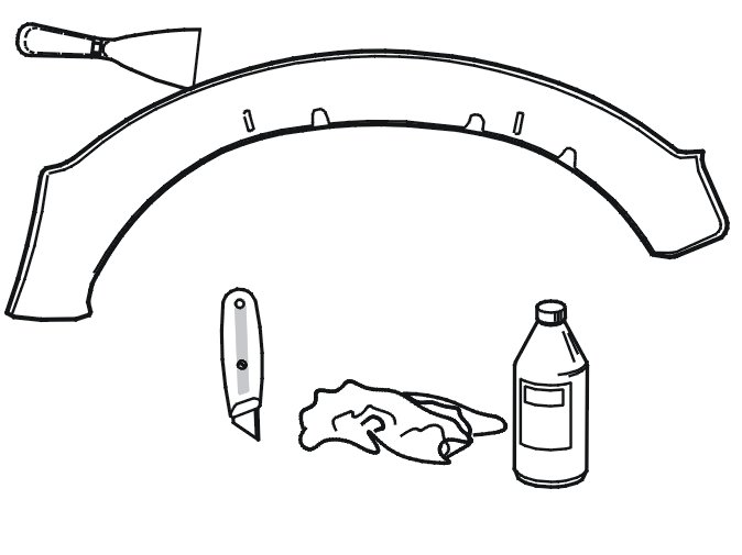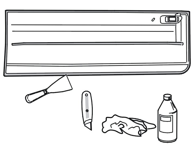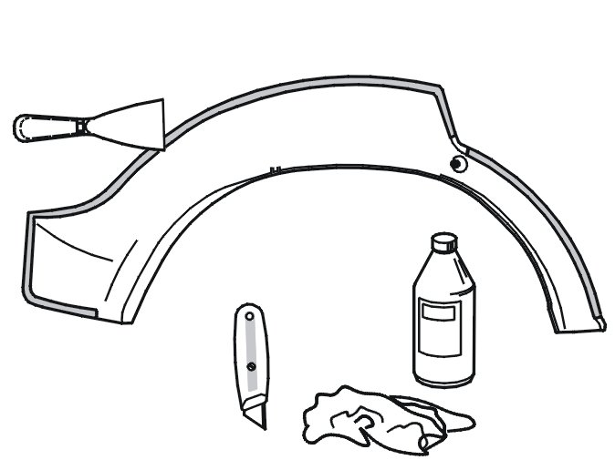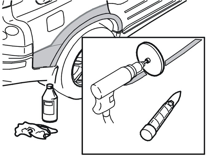 Clean any adhesive residue off the bodywork. Use 951 2942 Circle 951 2942 Circle. Clean using Isopropanol.