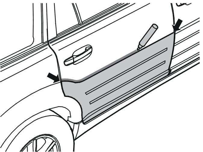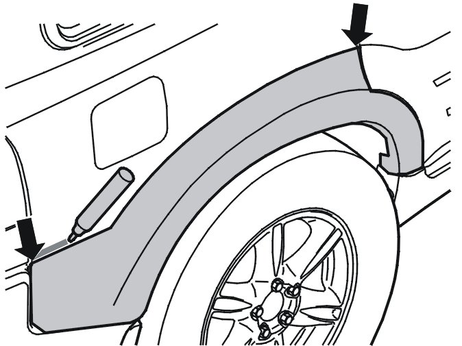 Mark the location of the bodykit panel against the bodywork using a whiteboard marker pen.