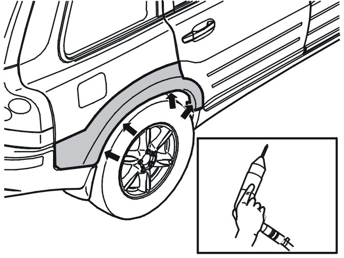 Drill out the rivets in the rear wheel arch. Use a 6 mm ( 1/4 ") diameter drill bit.
