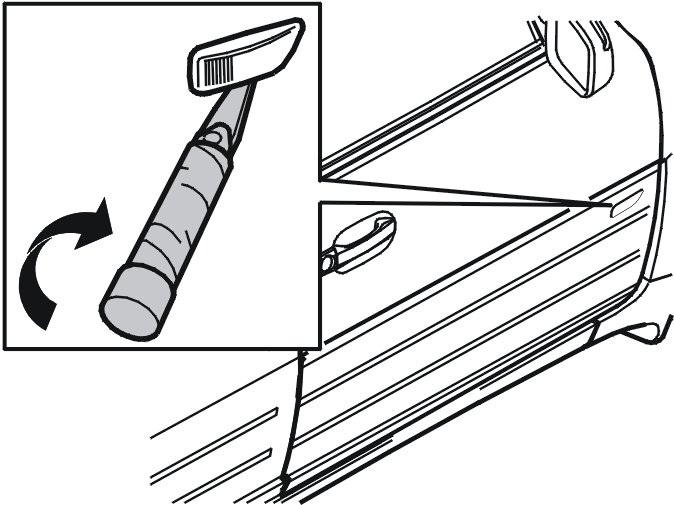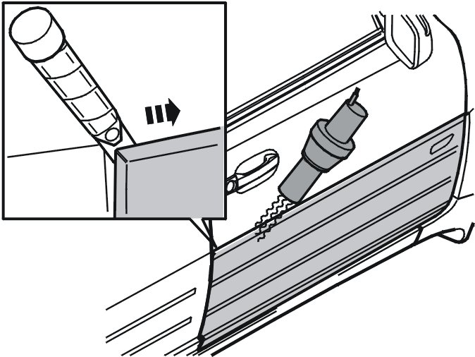 Remove the parking lamp. Carefully pry off in the cut out in the lower edge of the parking lamp. Use a plastic weatherstrip tool.