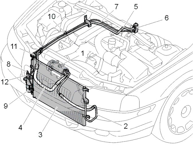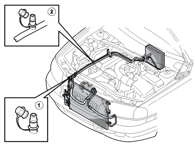Warning! Follow the safety instructions for work on the air conditioning system. Refer to: Safety information air conditioning system Safety Information Air Conditioning System