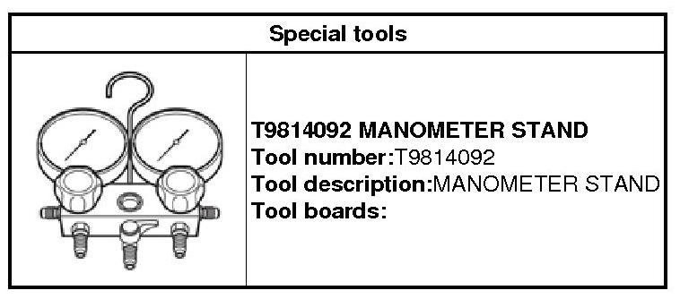 - Connect the manometer to the service valves, hang from the bonnet opening, start and run the engine at idle.