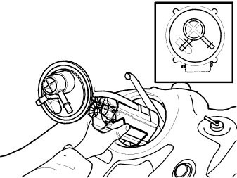 Press the right-hand level sensor down so that the fuel line connections are pointing forwards and to the right.