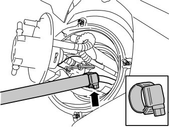 Open the left-hand level sensor, use wrench 999 7314 Spanner 999 7314 Spanner. Insert the heavy duty hose and suck out the remains from the bottom of the left-hand side of the fuel tank.