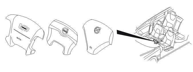 The driver's airbag is located in the steering wheel. The passenger airbag is located above the glove compartment in the dashboard.